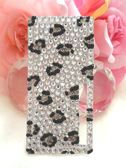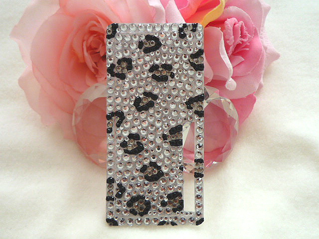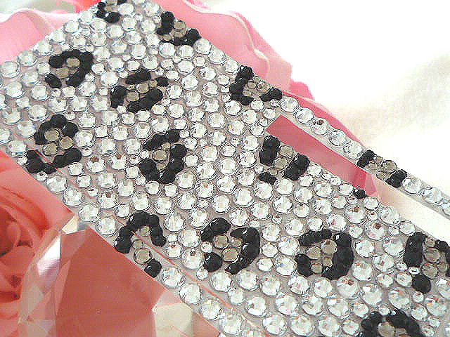 ラインストーンは高品質アクリルストーン、ダイヤカットストーンをミックス使用しています。大人っぽいクールなシルバーとブラック系のヒョウ柄デザインです。スタイリッシュなデコ電シートです
