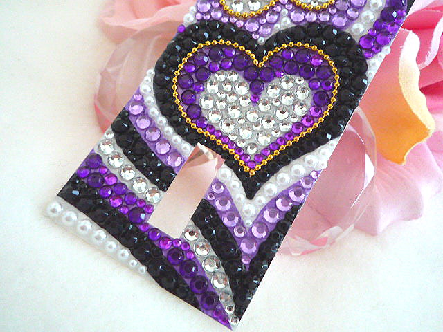 【オーダーデコ電シート】★S004★ ハートプッチ*紫黒*大人小悪魔*イニシャル
